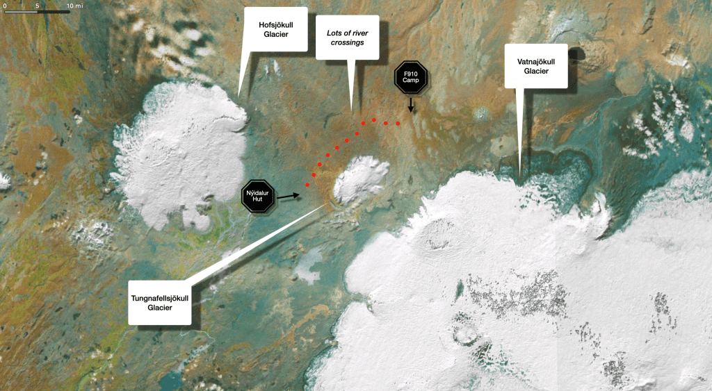 The ice cap conceals volcanoes and mountains, including Iceland’s tallest mountain on the south side, Hvannadalshnjukur, whilst numerous glacier rivers flow out of it towards all directions, some of which we already had an intimate relationship with.