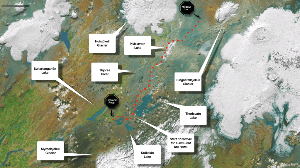 Thu 3rd Aug, Nýidalur Hut to The Highland Centre Hotel (111km, 1157m elevation)