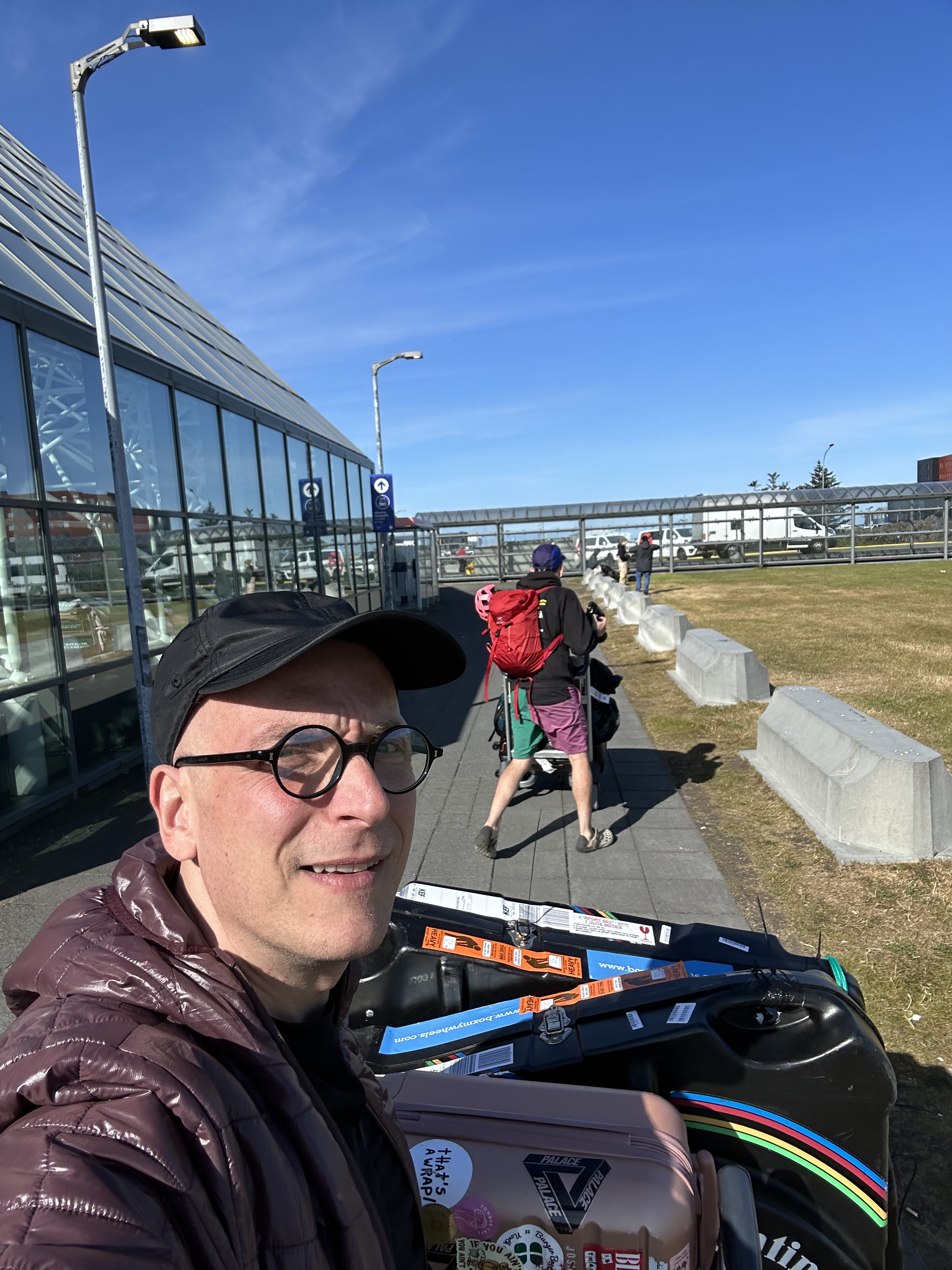 Josh had similar setting, albeit he was also carrying his professional videography stuff, i.e. camera, GoPro, drone, and all the relevant paraphernalia, tripod, batteries, bless him. We flew to Keflavik, loaded our hired car at the airport and headed to Reykjavik. There we had arranged to leave the “empty” bike boxes and suitcases in the hotel which we had booked to stay on our way back, 8 days later.
