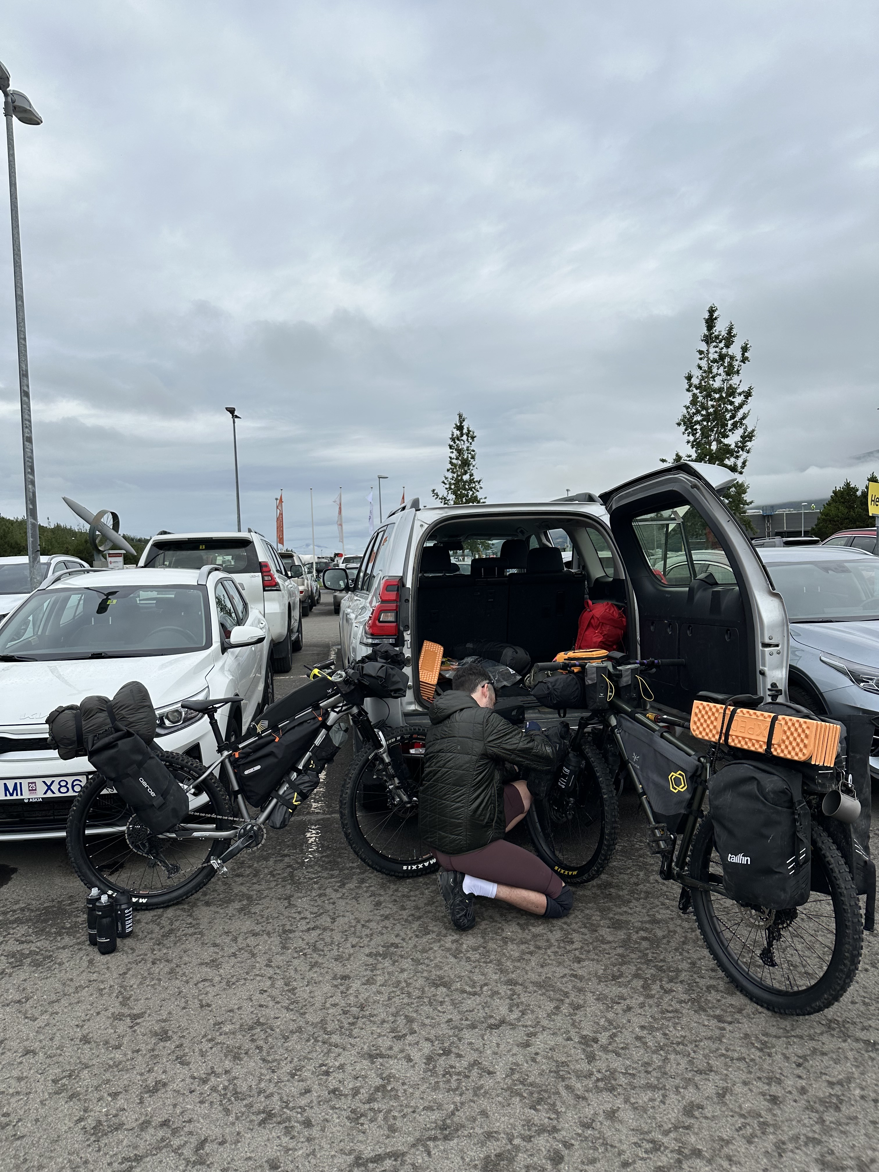 We then assembled the bikes on the pavement next to our parked car, separated our clothes and gear, before we dropped off the stuff at the hotel. In the suitcase we left some fresh clothes for our Reykjavik stay on the way back, along with the floor pump and bigger tools, as well as more cable tyres and duck tape for securing the bike boxes on our flight back. With regards the car…Is it really worth it to have a big 4×4? Yes it is.