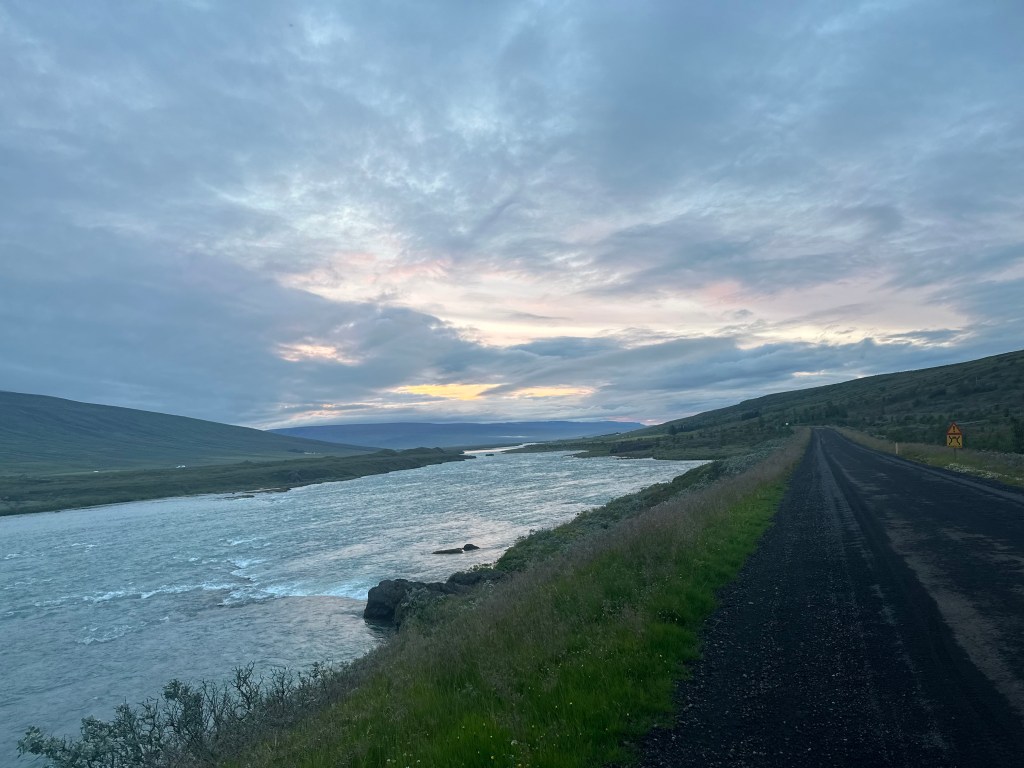 We continued with some trepidation as we were gradually accepting the fact that we would not make it to our destination. The area was very quiet and we were gradually acclimatising to the new norm of being alone on the road. After further 25km of riding next to Skjalfandafljot river, we camped on its bank soon after 1am. Although it was twilight, we were not using lights during our ride, leaving our eyes to adjust in the dark. Looking back at it now, I think of us a tad disillusioned to envisage ourselves getting to Botni Hut on the first day, having left Akureyri so late in the afternoon. Going over the lava fields at Botni in the dark would have been interesting, to say the least.