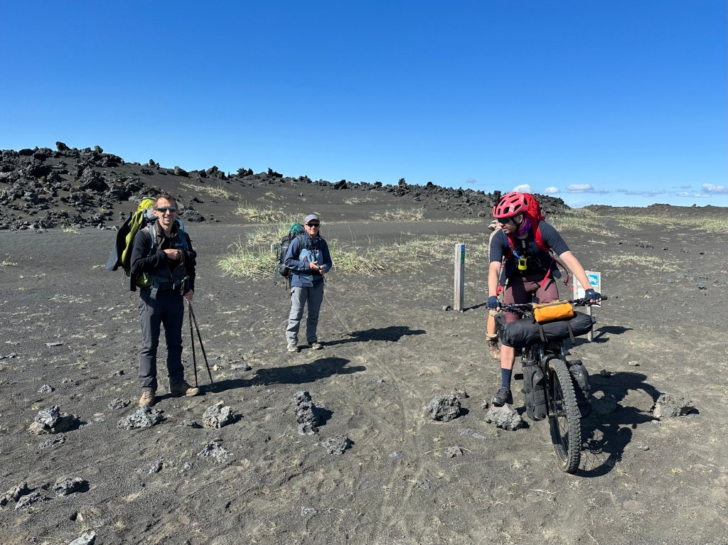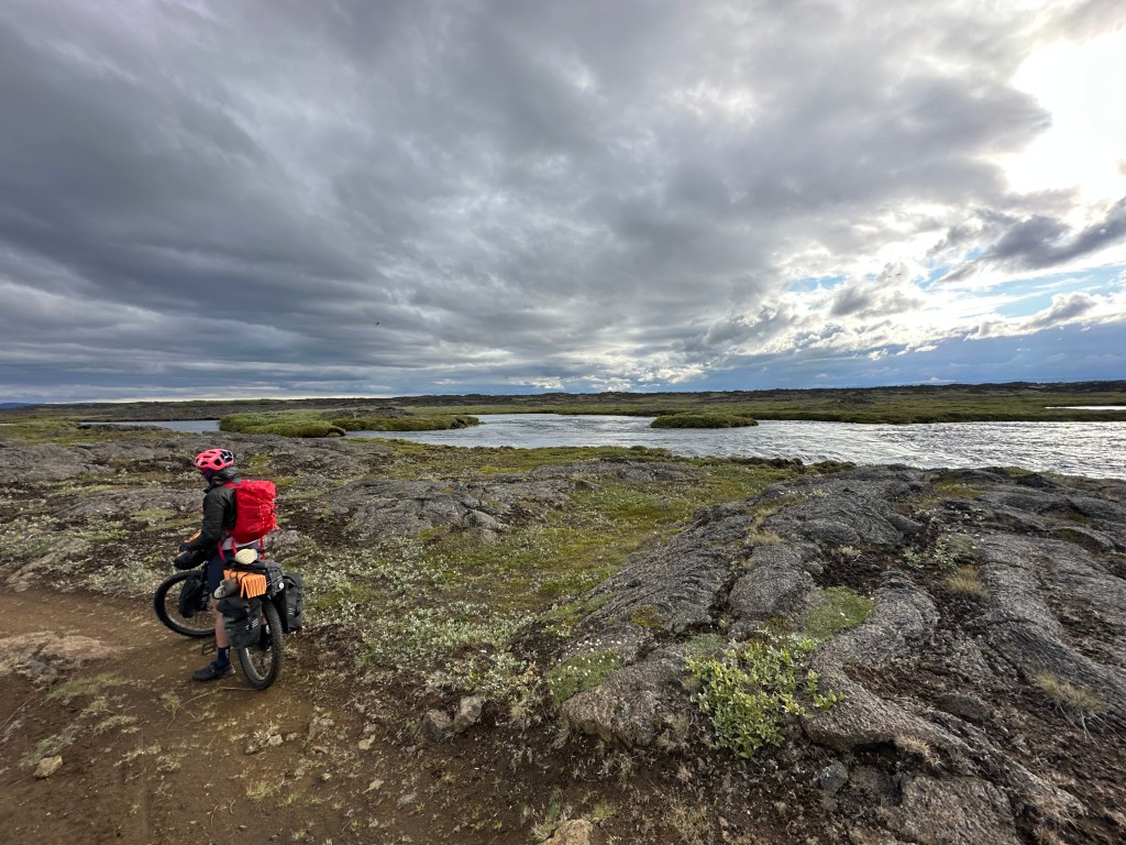 In fact, lava from Bárðarbunga eruptions (amongst others), in one form or another, would be eventually trampled over by our own humble 2.8” tyres across at some point during our subsequent rides, from the fields in Botni, to the south-east parts of Odadahraun desert, and even further south of Nýidalur (Nyidalur) valley, and along Iceland’s longest river, Þjórsá (Thjorsa) and its reservoir, lake Sultartangarlón. Now I dare you to get a paper map and run your index finger along of those locations.