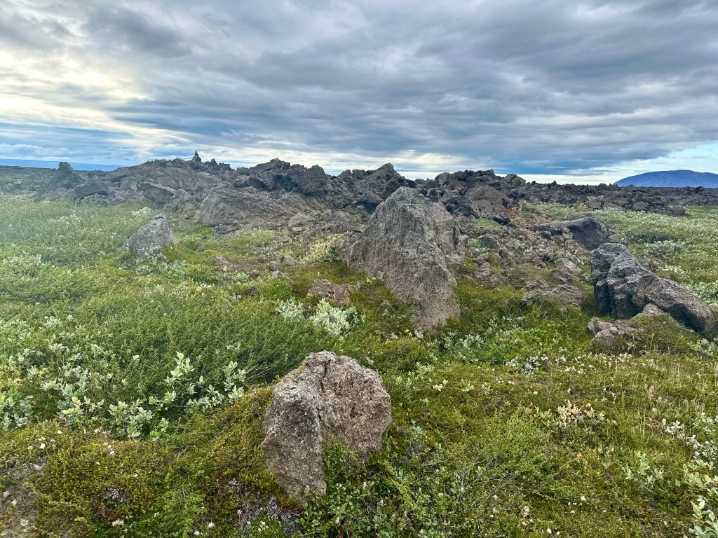 The entire area east of Skjalfandafljot, all the way to Jokulsa river is the imposing Odadahraun volcanic desert which encompasses different lava fields depending on the volcano and various eruptions. Just south of lake Svartбrvatn, the edge of Suðurárhraun fields from the west was in front of us, whilst Utbruni was lying to the east.
