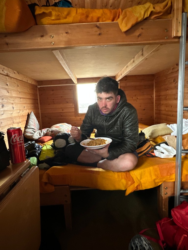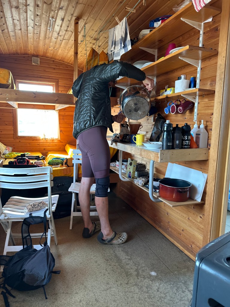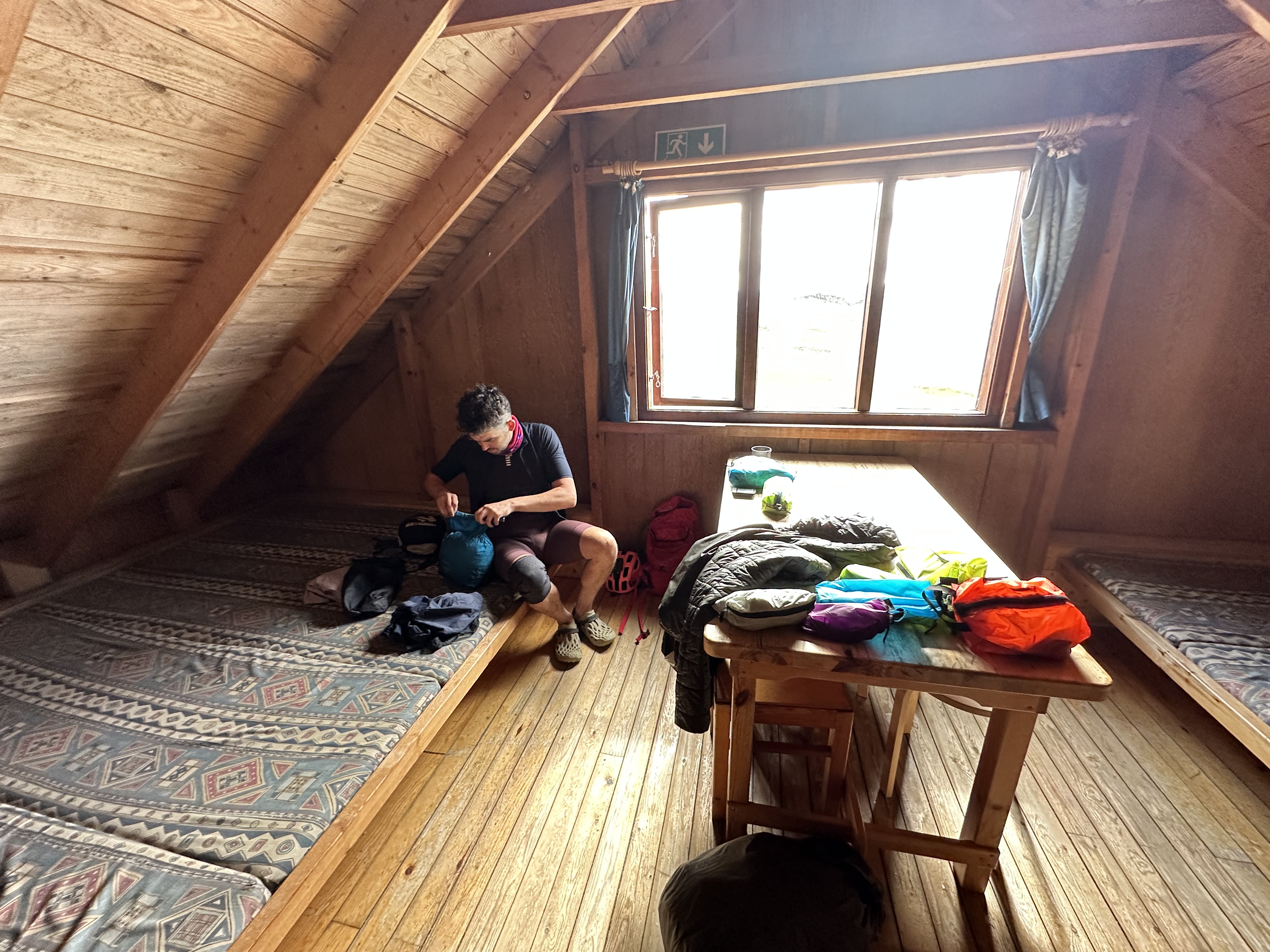 Botni was our first experience of a highland hut. It had two rooms, one being the hallway where the cooking is done, and the other the dormitory, which sleeps 16 on bunk beds, 8 on each side. Three French hikers were occupying one side, and we had the other to ourselves. The hut provided crockery, cutlery and a gas stove to cook, and no electricity or water. Other than that, it was up to everyone to make do, get their water from a stream a few hundred meters from the hut, which we did and promptly filtered. Oh, the fun times, when I was left alone, unsupervised, and ended up dropping the (only) filtration system into the very fast-moving current, and having to run along, follow its movements for some time and then jump into the water to get it back. Josh never witnessed it, thankfully. I haven’t even told him.