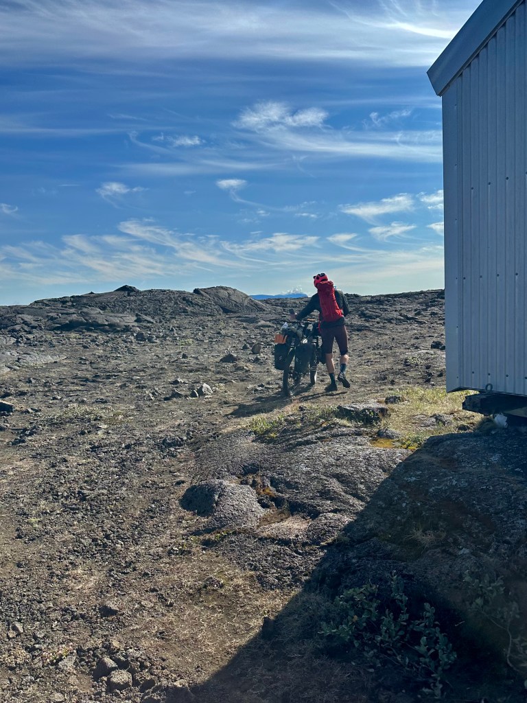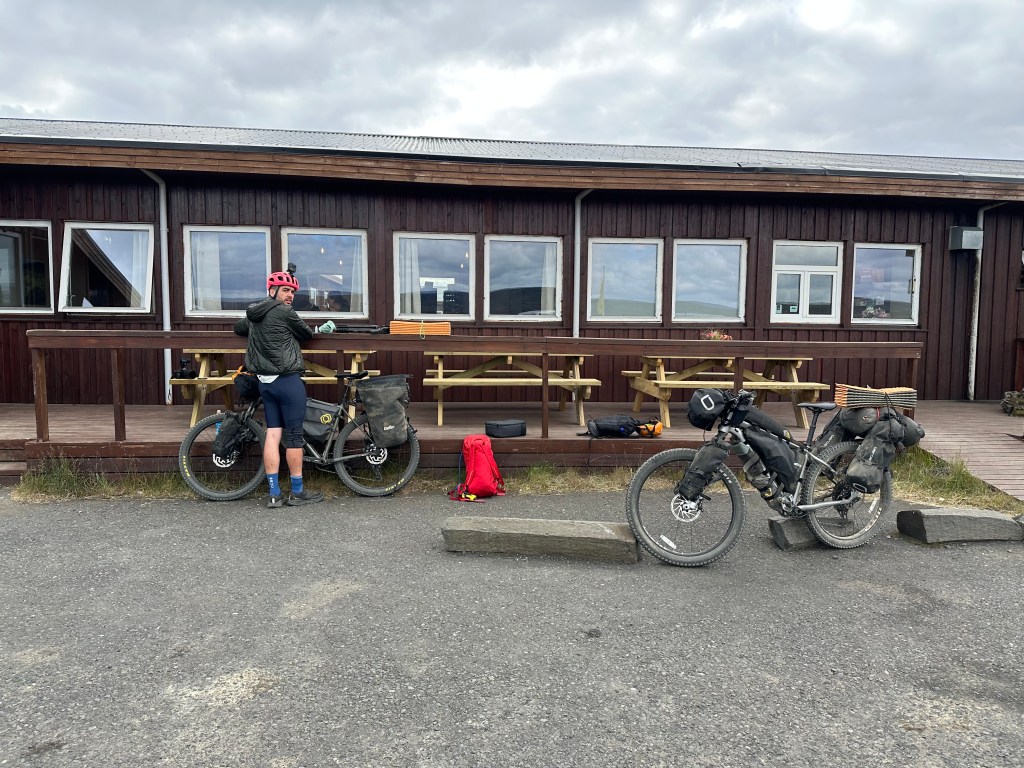 We then relaxed at the diner, we even had a beer with our dinner! I did ask for a wine list, but there wasn’t any (kidding). Although there were not many people staying in the hut, there was kind of a buzz. There were hikers coming in and out, and a few sets of bikepackers. The ones we interacted with the most, Kevin and Stuart, were kind and super-knowledgable with the Iceland Divide and gave us some advice. They had top-notch gears and bikes, and a whole bikepacking life before them. As they had seemingly retired from their jobs early, they were living a comfortably peripatetic and affluent life.