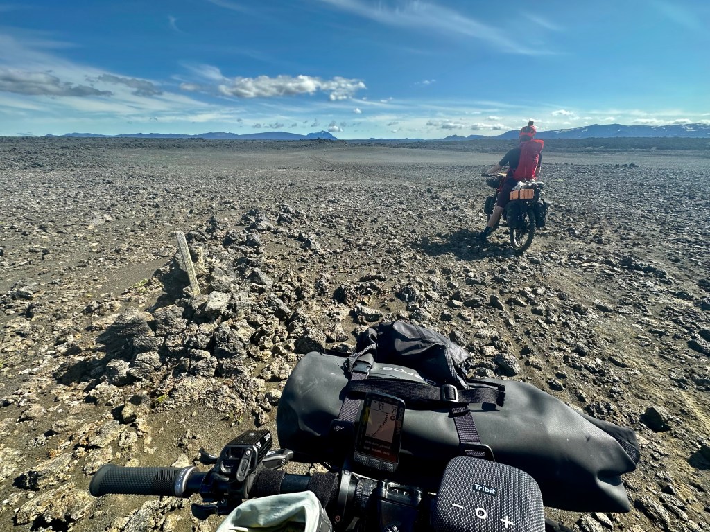 We were heading towards the land of lava and sand, with minimal fauna and flora. Considering Iceland has hundreds of volcanoes, of which around 30 are active, the types of topography we would encounter would vary, and subsequently, so our challenges. Lava fields of different classifications would prevail, depending on when and from where the lava was spewed, and to what degree glacial erosion had played a part in their subsequent formation. In addition, a big part of such terrain would be determined whether there was a passable track running through it, usually sandy or gravel. In fact, my biggest regret was, as I belatedly had the epiphany on day 7, that I had not meticulously captured the various sizes of gravel and rock along our route, in order to map out the terrain from a cyclist’s perspective, including the corresponding pain chart.