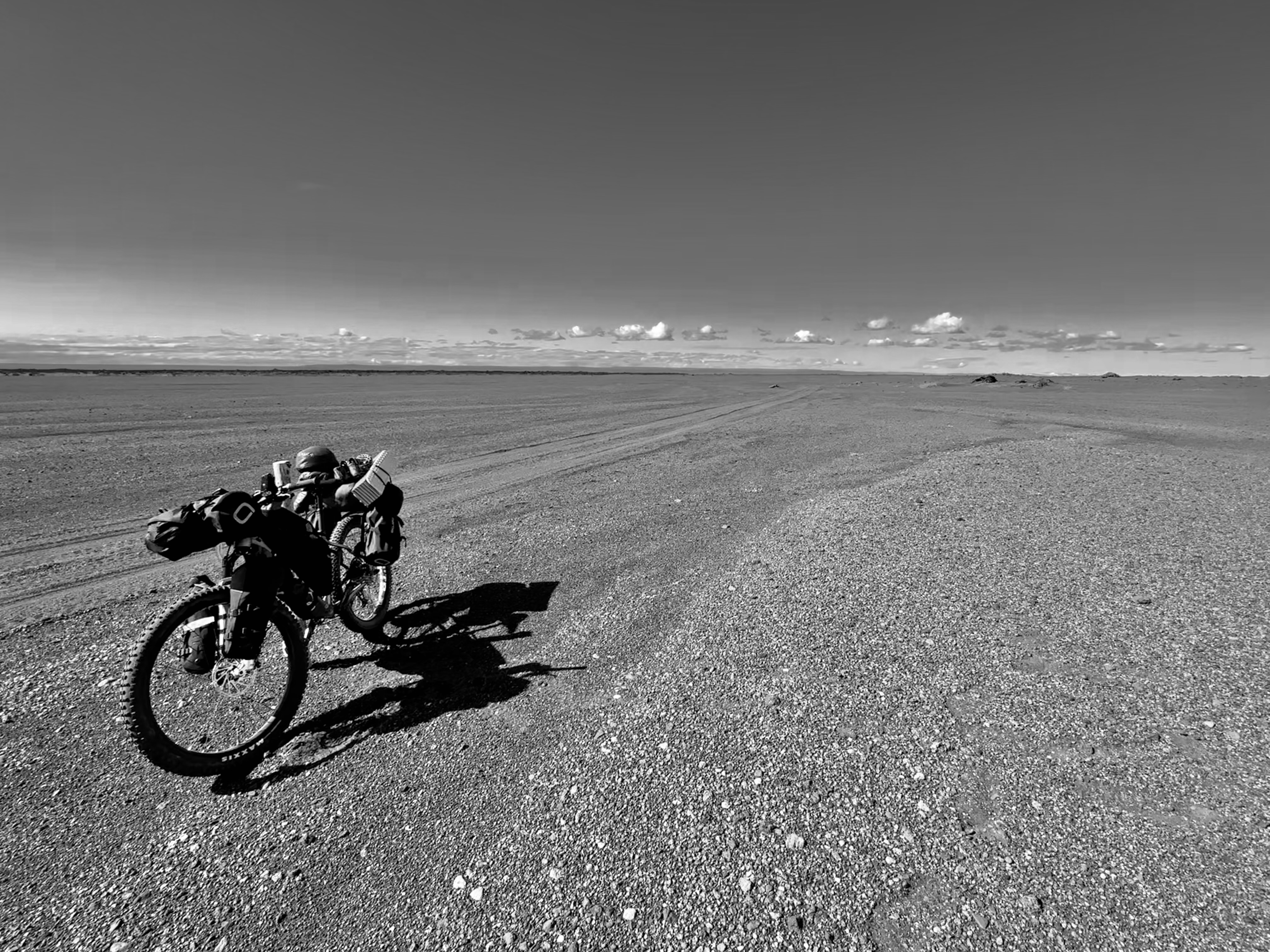 By “grooves” I mean those unintended, inconsistent, yet ever present “speed bumps”; some bigger, some smaller, some fucking humongous, sometimes appearing across the middle of the road, some others unpredictably popping up everywhere on our path. Trying to avoid them can make one veer towards the edge of the road only to be met by sandy ground. As one can imagine, one may have the illusion that it can be OK to continue on sand (and sometimes, it can better in comparison), but conversely, the bike can also be suddenly rendered immobile or proceed to display some spectacularly skidding, as we had experienced numerous times on our tour. One may think we were lucky having a hardtail mountain bike, but…considering I still feel a bit traumatised by grappling with those groovy gravel roads, all I can recall is how we were continuously scouting ahead to assess the size of the bumps, then try to get through a tiny path in between them, or gradually move towards the sides again if all fails, only to start sinking in quick sand and then “fuck, fuck, fuck”, get back to the bumps and ride along the waves until the nauseating feeling pushing us yet again back to the sides. And don’t get me started on how my arse felt that day.