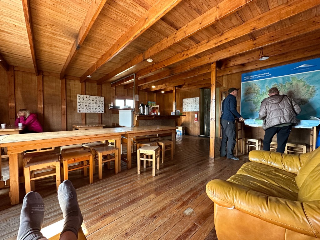Some steep ascents continued for a bit as we were heading west, around Vatnajökull; 6km further since we had left Urðarháls, we reached Kistufell hut.