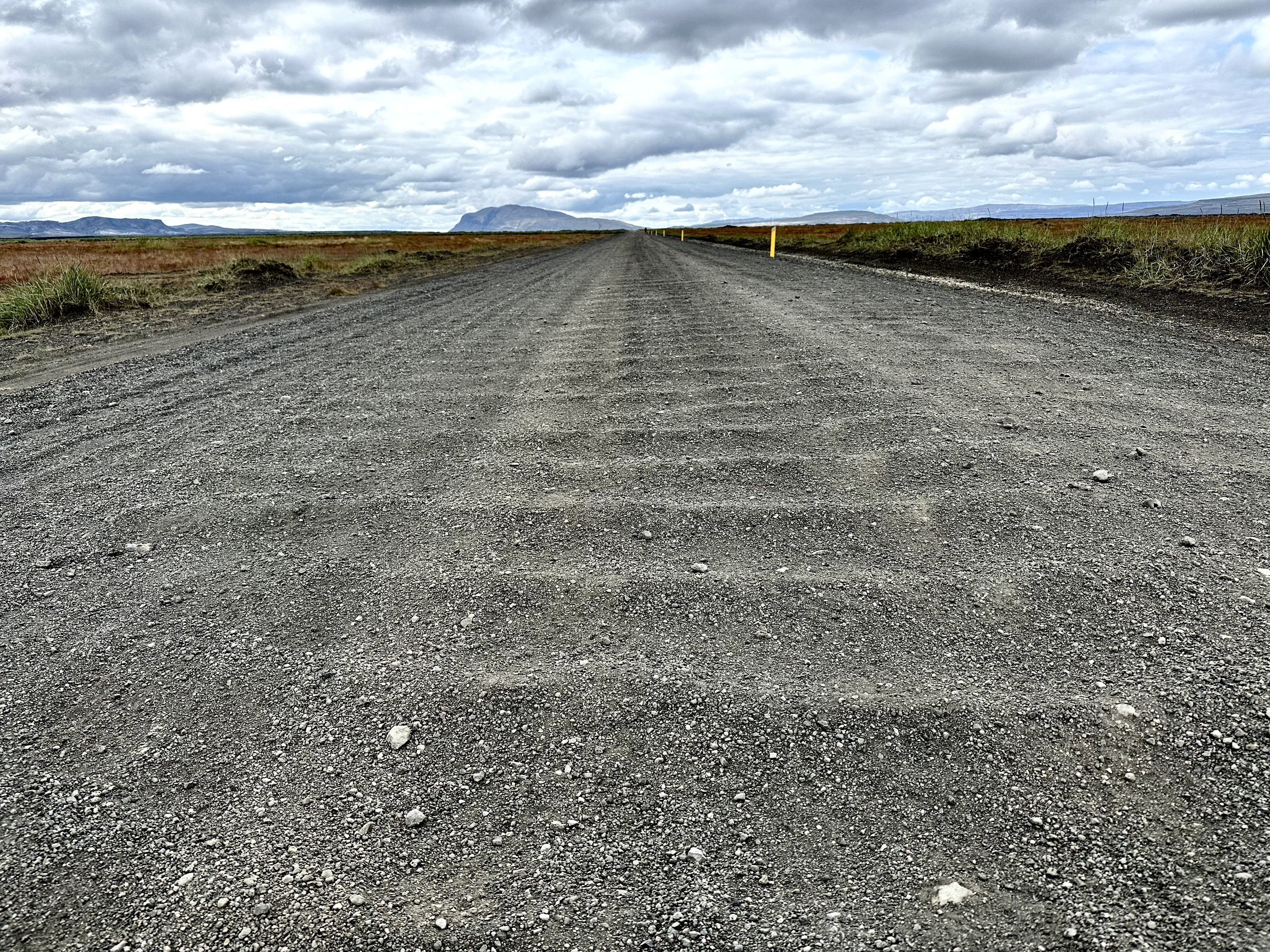 Instead we carried on straight, and with Mýrdalsjökull to the east, towards Hella. Since the 13km mark from the Highland Hotel the ride leads to a gravel road which had in accumulation the most pronounced “grooves”.