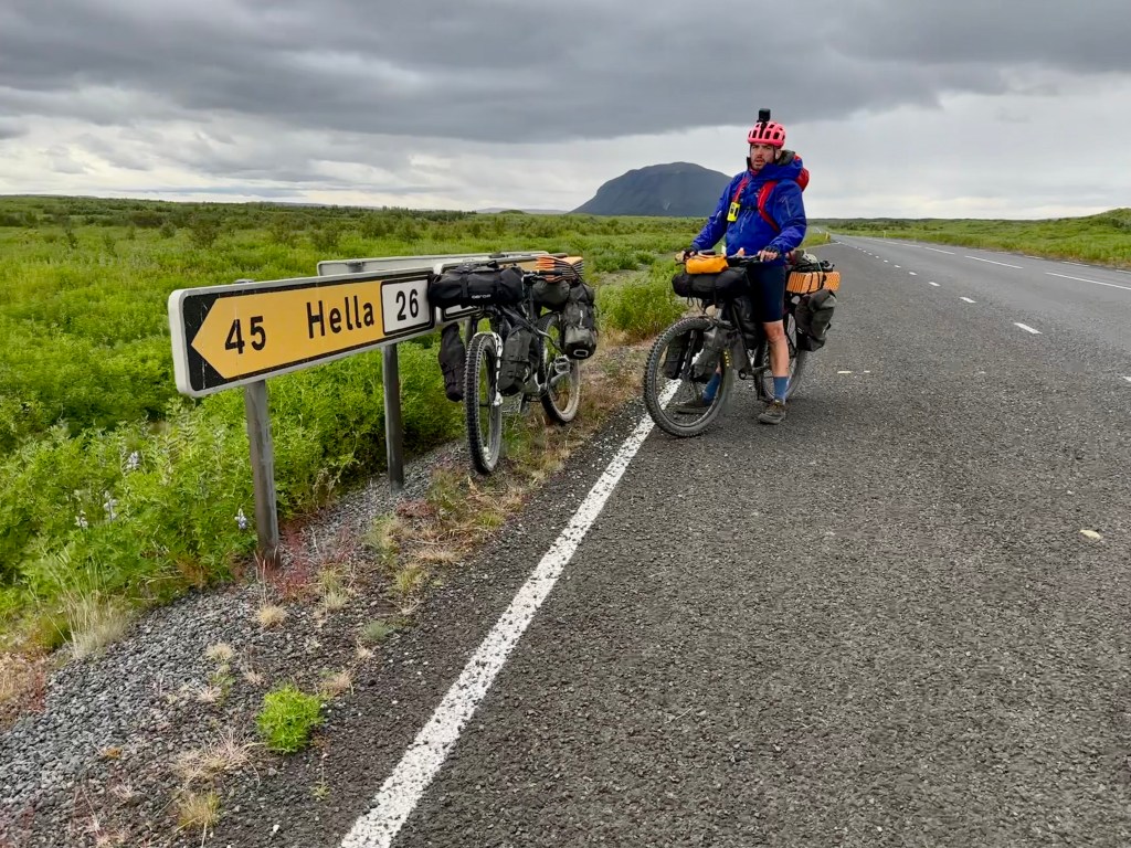 Eventually, we arrived in Hella, and reconnected with Route 1 for the first time since we had left the outskirts of Akureyri. The crooked triangle sign and subsequent photo with my bike miserably leaning against it are quite unremarkable, but considering our state of mind, this might as well have been the universal sign for Earth, and we had just landed back from our trip to the Moon. The only thing that was missing to mark the significance of the occasion was a welcoming crowd for a ceremony, lively waving their tiny flags and holding “welcome” and “you made it” banners, and the mayor of Hella with their full civic regalia, robes, gold chain and all, givings us reluctant hugs, and a brass band, playing a transcription of “Eye of the Tiger” song, whilst unsmiley, hardened elderly people offering us home-made Icelandic cakes and hardball glasses with neat spirits. This ridiculous train of thought could have gone long way sill, but in truth, that imagery would have been quite proportional if it were real.