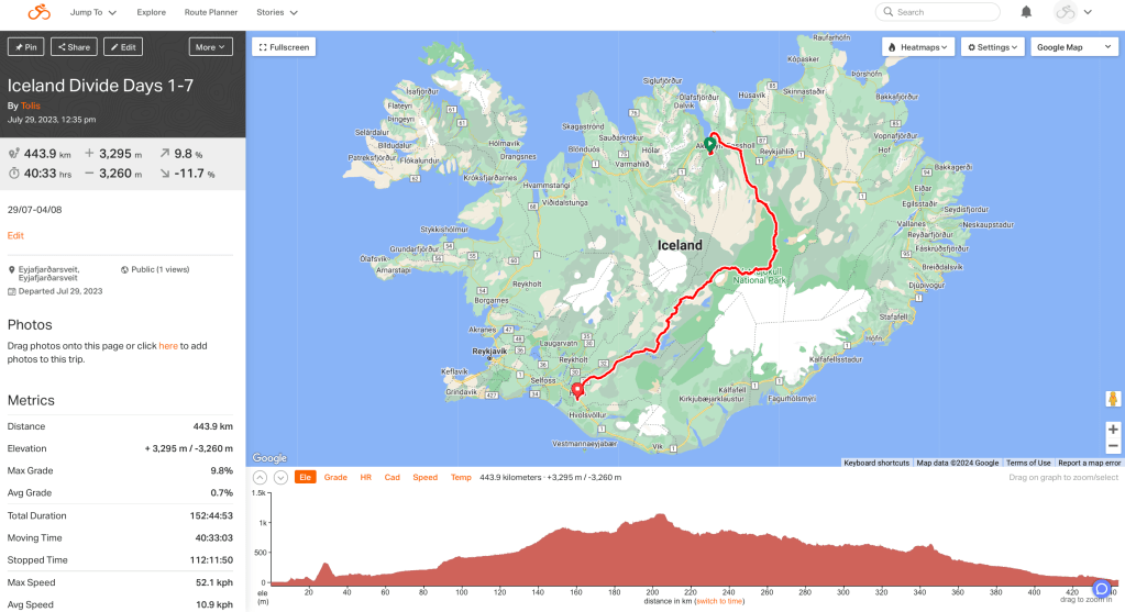 Day 1: Akureyri to Skjálfandafljót riverbank (80km, 687m elevation)